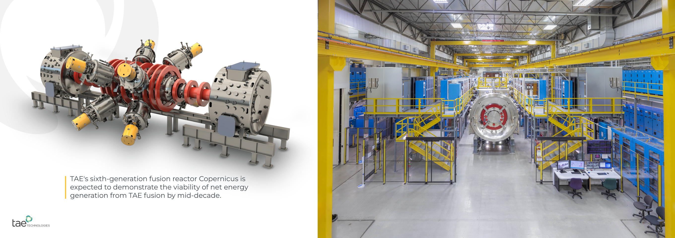 As the world leader in hydrogen-boron fusion research, TAE's non-radioactive approach represents the fastest, most practical, and economically competitive solution to bring abundant carbon-free energy to the grid. TAE's Copernicus reactor, which will be constructed in a 100,000-square-foot facility in Irvine, California, is designed to demonstrate the viability of achieving net energy generation with TAE's advanced beam-driven field-reversed configuration (FRC) - the penultimate step on TAE's path to commercialize clean fusion power.