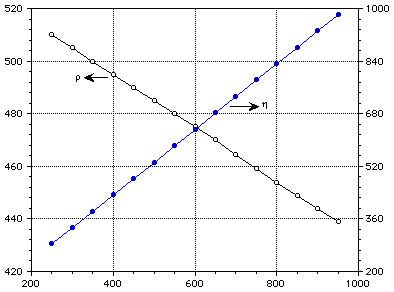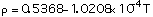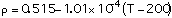 rho = 0.5082 - 1.0336x10-4 T* - 4.8279x10-10 T*2 - 5.2853x10-12 T*3 (1)