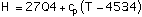 with T in degrees Kelvin in Eq (8) and range 190-650 C, degrees Celsius in Eq (9) and range 500-1300 C and the specific heat at constant pressure in the range 600-1000 C constant with cp=0.995 cal/g-K.