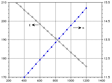 Figure 2: Elastic modulus and thermal expansion of lithium aluminate.