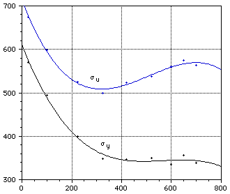 Figure 5 : Yield stress ([[sigma]]y) and ultimate tensile strength ([[sigma]]u) of V-15Cr-5Ti (ANL 101).