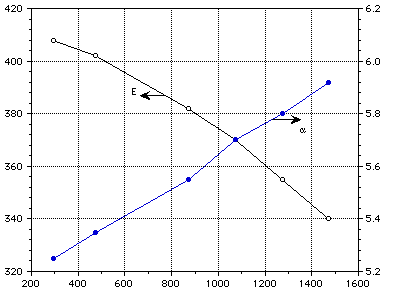 Figure 2 : The elastic modulus and thermal expansion coefficient of tungsten.